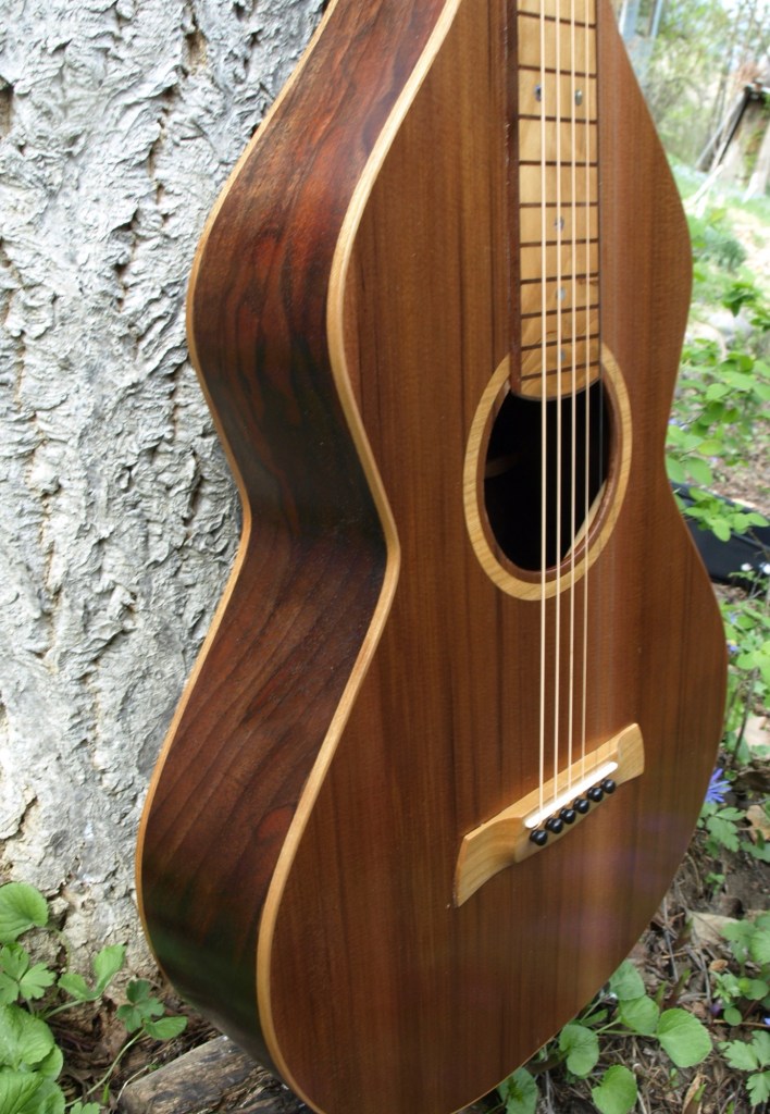I’ve just completed the last of the four guitars I’ve been working on this last winter. They’re all Hawaiian acoustic steel guitars, or Weissenborns as they are commonly known. They’re all pretty close to the same dimensions, varying in body depth from 3 1/2″ to 3 3/4″, the specs for each one are listed on the ‘available’ page.